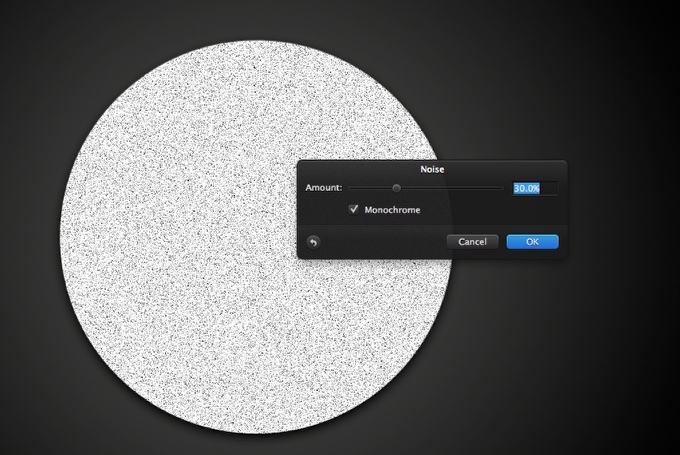 Ajoutez un nouveau calque et accédez également à Calque> Créer un masque d’écrêtage. Remplissez ce nouveau calque de blanc à l’aide du Outil pot de peinture (N). Après cela, assurez-vous d’avoir le noir et blanc pour la couleur d’arrière-plan et de premier plan. Ensuite aller à Filtre>Style>Bruit. Utilisation 30 % pour le montant et sélectionnez Monochrome.