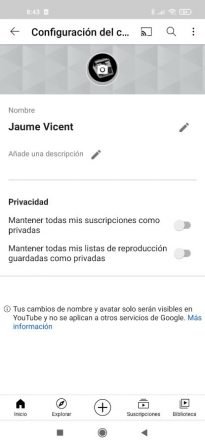 Pour le faire depuis l’application mobile, vous devez cliquer sur l’image du profil et sélectionner la chaîne. Ensuite, sur le côté droit, vous devez sélectionner « Modifier la chaîne » et une fois dans cette section, vous pouvez modifier toutes les informations, de la même manière.