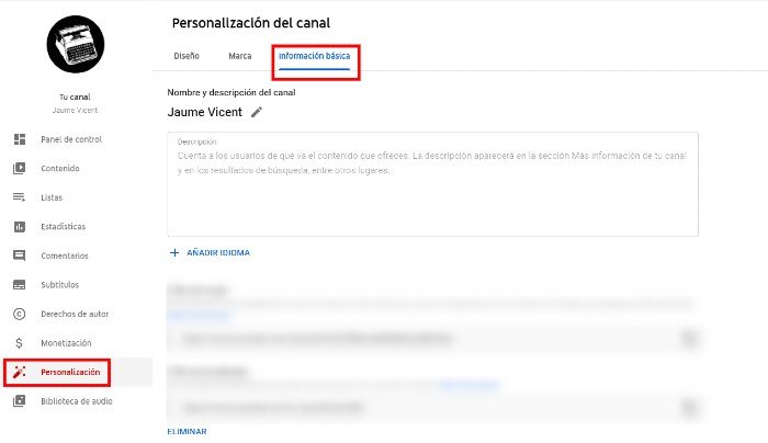 Pour le faire dans l’application de bureau, vous devez accéder au compte YouTube Studio, puis dans le menu de gauche, vous devez sélectionner « Personnalisation » et sélectionner l’onglet « Informations de base ». A partir de là, il est possible de modifier le nom de la chaîne, ainsi que sa description. Pour terminer, appuyez simplement sur « Publier ».