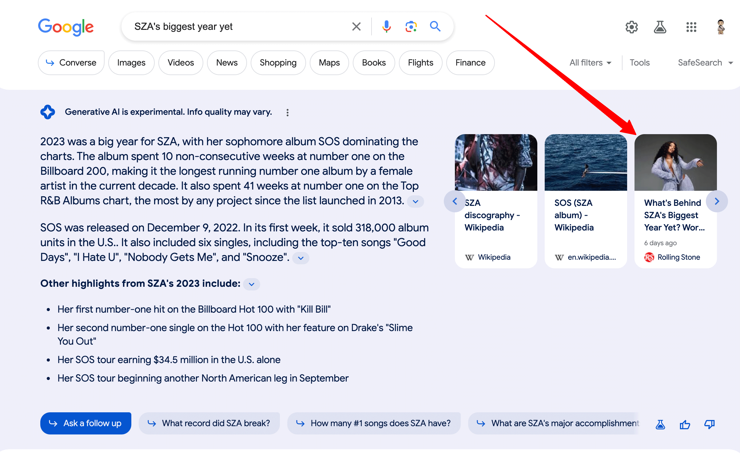 Par exemple, voici une réponse générée par l’IA de SGE qui inclut une carte du site Web des Rolling Stones :