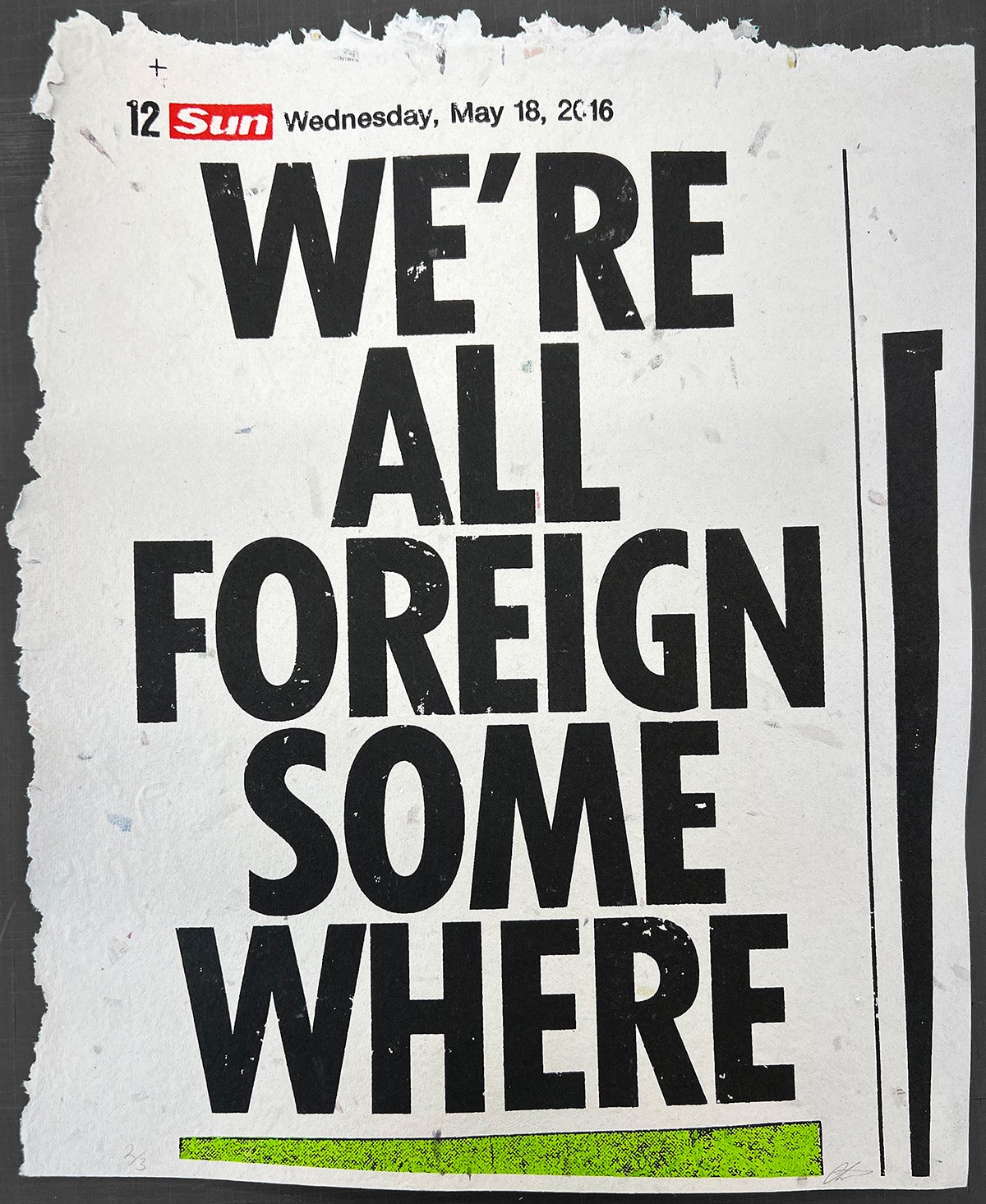 Intitulé The People Fled When The Sun Went Down, l’ensemble de l’œuvre est composé de titres et d’images recontextualisés du journal Sun, que Shaw a récupérés à partir de copies trouvées et volées. Ceux-ci ont été déchiquetés, recyclés à la main, puis utilisés pour créer des tirages accrocheurs qui retournent le journalisme provocateur – et souvent inexact – contre ceux qui l’ont écrit.