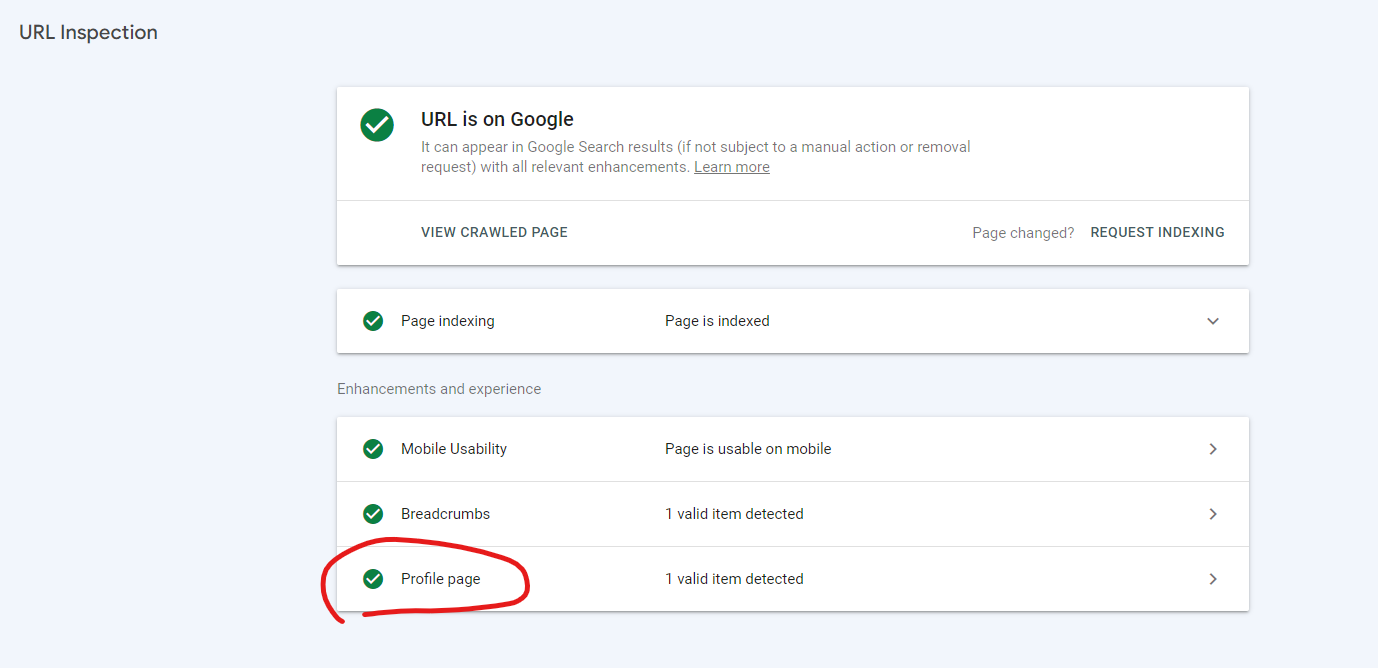 Voici le nouveau rapport de la Search Console pour les données structurées de la page de profil :