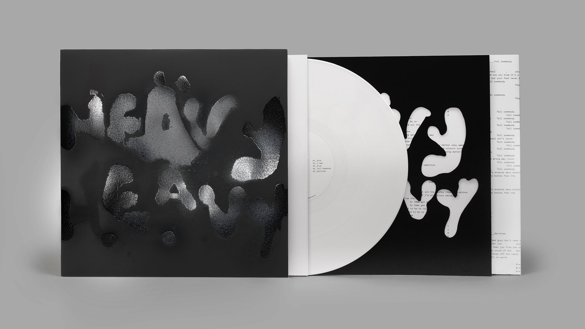 Pour leur troisième album, Heavy Heavy, le trio d’Édimbourg Young Fathers s’est à nouveau associé au designer Tom Hingston, qui a travaillé avec le groupe lauréat du Mercury Prize sur leur précédent album. Heavy Heavy traite des turbulences et des tensions de la vie et de la société, mais aussi des moments d’optimisme dispersés entre les deux – des thèmes repris pour la pochette.