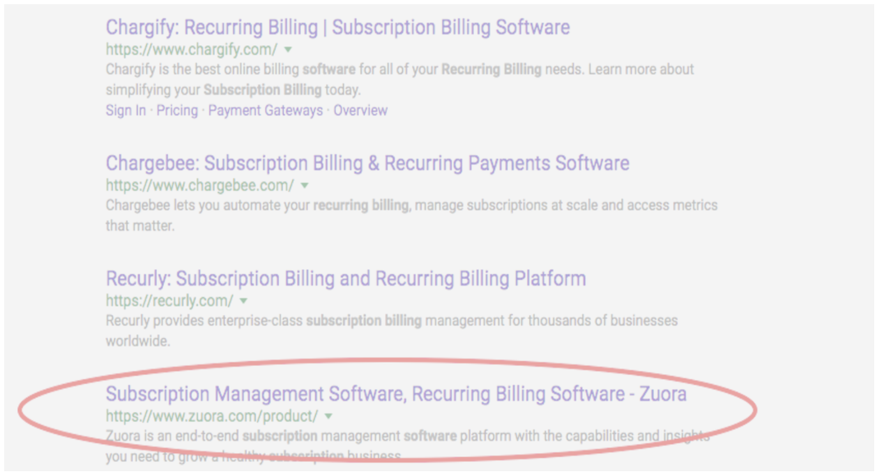 Zuora a 12 concurrents établis (sans compter tous les petits concurrents de démarrage dans l’espace), et tous les produits sont à peu près les mêmes que le suivant : le logiciel de facturation récurrente.
