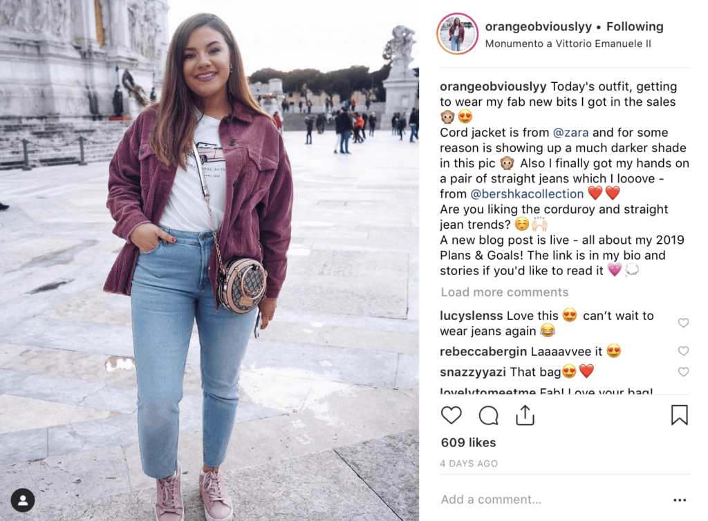 En prime, les micro-influenceurs et les défenseurs sont plus susceptibles de se connecter avec les acheteurs en raison d’expériences partagées. Qui sait ce que c’est que d’être Kendall Jenner à part Kendall Jenner ? Un micro-influenceur, cependant, est accessible et accessible, ce qui reflète bien votre marque. Jetez un œil à cet influenceur, par exemple. Avec 10 000 abonnés, elle a du poids, mais elle est aussi réelle et engageante (et utilise ces emojis !)
